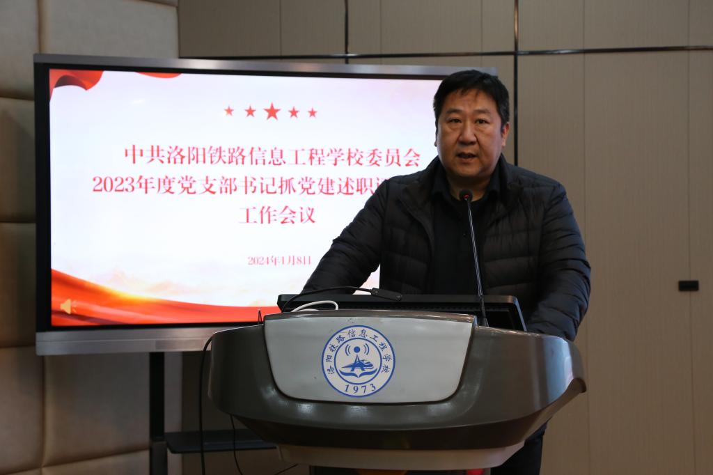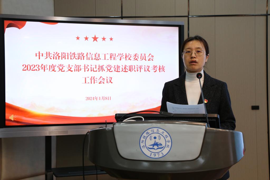 校党委书记李林榕对各支部述职进行总结点评,他指出各支部书记政治站位较高,汇报内容立意较新,总结工作全面,分析问题客观,谋划工作思路清晰。并对2024年工作提出四点意见,第一,不断提升理论水平,扛稳扛牢政治责任。要持续深化主题教育学习成果,一是管好思想,用党的创新理论引领支部建设;二是带好队伍,发挥好党员先锋模范作用和支部战斗堡垒作用;三是抓好作风,要高标准严要求做好党风廉政建设。第二,不断提升育人水平,落实立德树人任务。坚持为党育人、为国育才,将思想教育贯穿于教学工作全过程,持续构建大思政格局。第三,不断提升内涵建设,推动改革事业发展。学校正在提高办学层次的关键节点,要在发展质量上下功夫,优化学校资源,实现学生工作、财务工作二级管理,深化人事制度改革,提升后勤服务质量,构建和谐向上的校园氛围。第四,不断提升干部素养,提供人才保障支撑,完善考核评价与激励机制。全体中层干部应担当作为、履职尽责、踔厉奋发,发扬好洛铁精神,为学校高质量发展作出贡献。