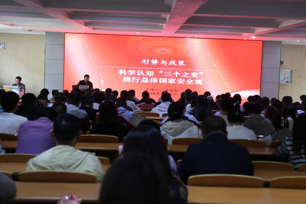 4月15日,正值第九个全民国家安全教育日,校党委书记李林榕以《科学认知“三个之变”,践行总体国家安全观》为题,为全体教职工讲授一堂别开生面的形势与政策课。