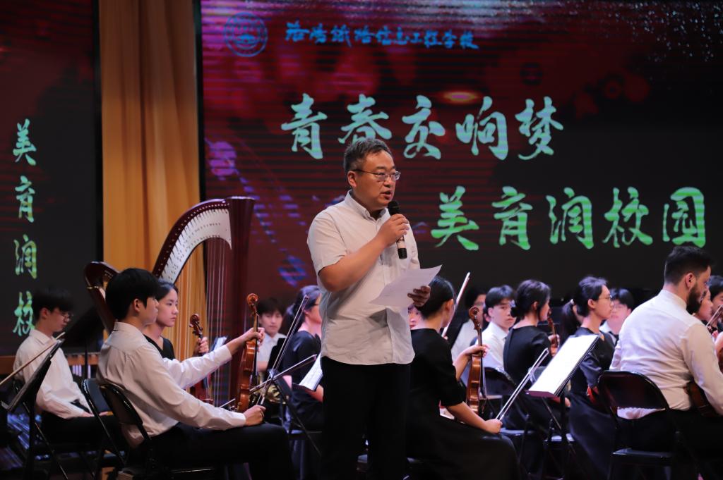 为深入学习贯彻习近平文化思想,大力弘扬主旋律,全方位提升学校美育水平,5月23日,学校特邀河南机电职业学院知行交响乐团,在我校学生活动中心举办“青春交响梦 美育润校园”专场音乐会。
