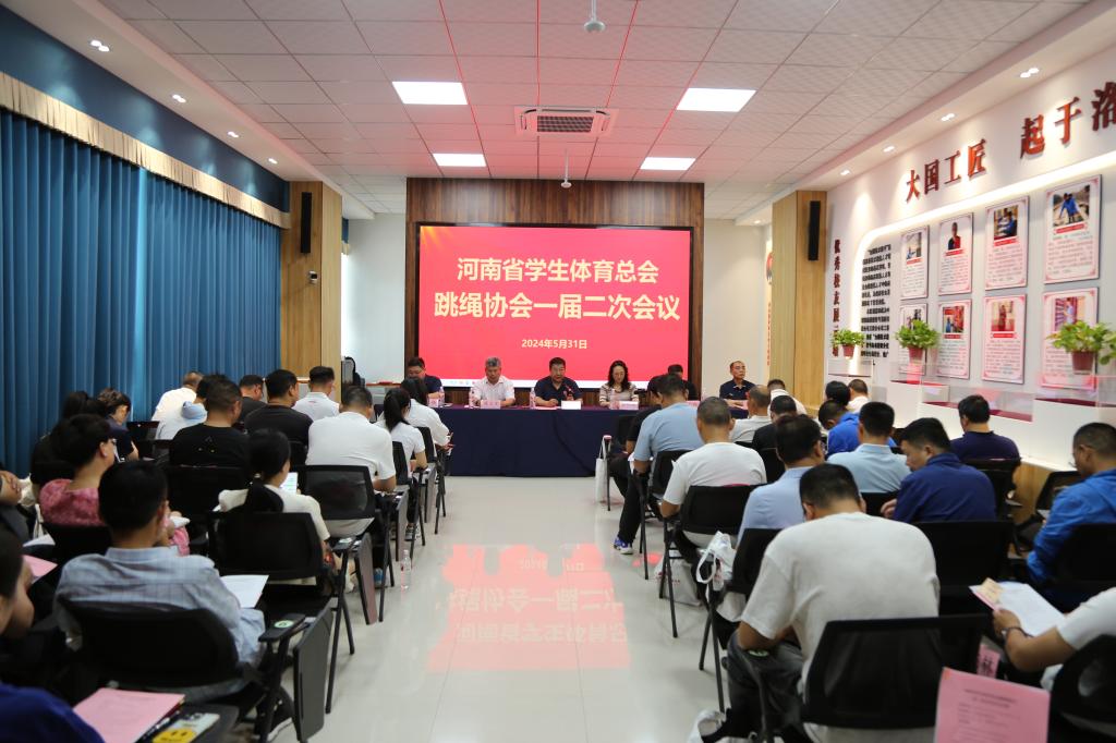 5月31日上午,河南省学生体育总会跳绳协会一届二次会议在洛阳召开。来自全省14个地市的高校体育学院院长和中小学、幼儿园校长(园长),市县(区)教体局学生体育工作负责同志,跳绳运动方面的资深专家、知名教授和体育教师,地方跳绳协会和体育健身企业的负责人共60余人参加会议。本次会议由协会秘书长、3118云顶集团官网公共教学部主任王振主持。