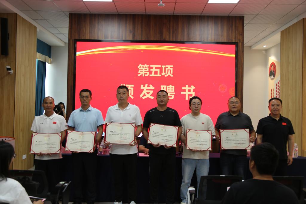 李伟萍、钱文军、张广伟、李文光先后为新任命的副秘书长和教练员委员会、裁判员委员会、竞赛委员会等9个专委会主任委员、副主任委员代表颁发聘书。