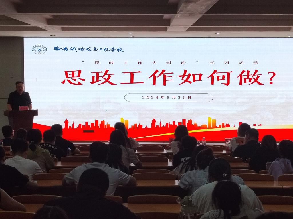 为进一步推动学校思想政治工作创新发展,不断推动我校学管队伍建设,着力构建“大思政”育人格局,提高立德树人成效。5月31日下午,我校在思政大讲堂召开“思政工作大讨论”系列活动第四场暨“思政工作如何做”专题研讨会。校领导李林榕、李文光、尹亚波、李力厚, 相关部门负责人,各系主任、学管主任、学管干事、辅导员、班主任代表和学生干部代表参会。会议由副校长尹亚波主持。