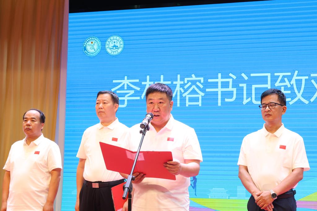 洛阳市教育局党组成员、副局长乔思军,河南省学生体育总会跳绳协会主席、我校党委书记李林榕,洛阳市城乡一体化示范区党工委委员、洛阳伊滨科技城管委会副主任冯志昌,洛阳文旅职业学院副院长聂京涛,洛阳市城乡一体化示范区教育体育局党组书记、局长陈建银,洛阳市洛龙区教师发展中心主任刘京波,省学生体育总会跳绳协会副主席、国际级跳绳裁判李伟萍,全国跳绳推广委员会竞赛委员会主任白炎波,洛阳师范学院体育学院院长董顺波,河南科技大学体育学院副院长介春阳等省市区领导嘉宾出席开幕式。