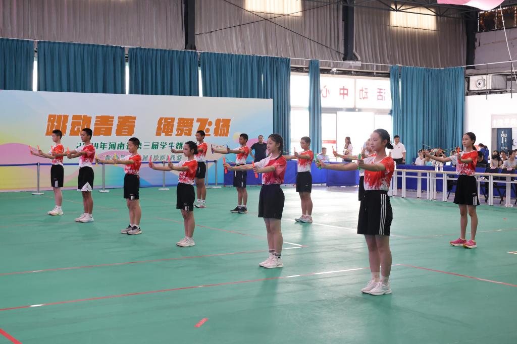 开幕式上,洛阳市洛龙区建春门小学附属幼儿园的幼儿啦啦操,焦作市布兜熊教育科技有限责任公司的幼儿花样跳绳表演,河南省学生体育总会跳绳协会的全国冠军和国际冠军花样跳绳高难度技术展示,或呆萌可爱,或腾转翻飞,充分展示大中小幼青少年对跳绳运动的热爱。