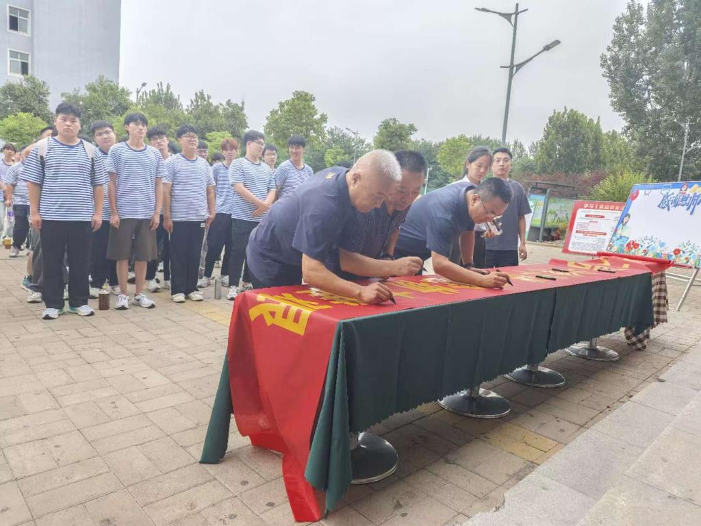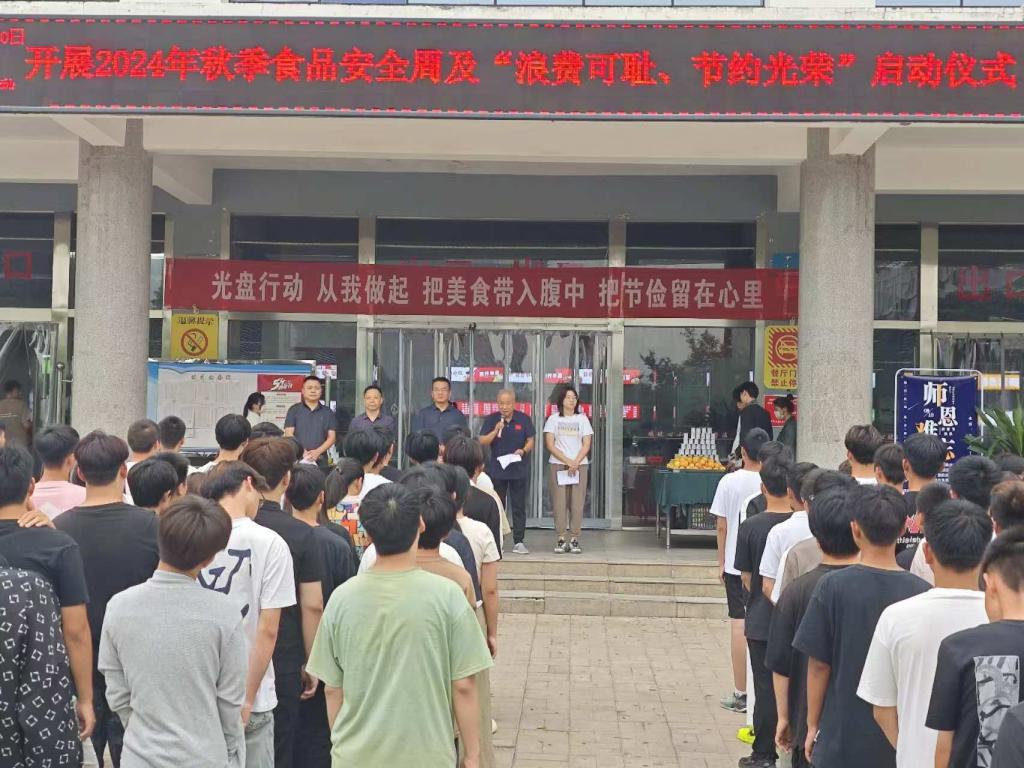 为落实河南省教育厅关于开展2024年全省学校食品安全宣传周活动的文件要求,推动我校食品安全集中整治工作走深走实,守护广大师生的身体健康和生命安全,9月10日,在学子餐厅开展学校2024年食品安全宣传周主题活动启动仪式。校党委副书记、副校长于庆斌,副校长、校工会主席史亚非,总务科科长孙大庆、校团委书记杨帆及200余名学生代表参加活动。