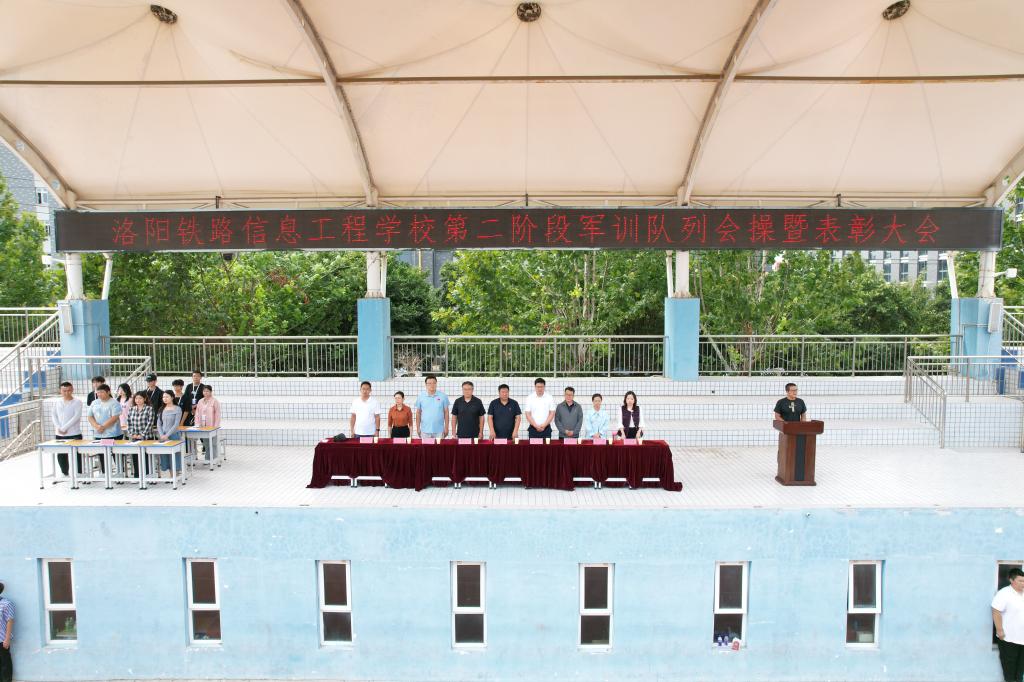9月21日下午,我校举行第二阶段军训队列会操暨表彰大会。校党委书记李林榕、副校长尹亚波,学生工作部、轨道信号工程系、电信工程系、现代服务系主要负责同志,全体大专和现代服务系新生参加大会。会议由学生工作部副部长肖敏主持。