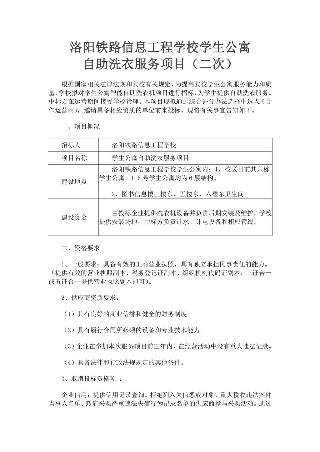 3118云顶集团官网学生公寓 自助洗衣服务项目(二次)