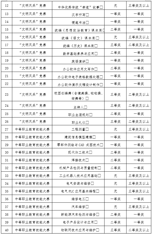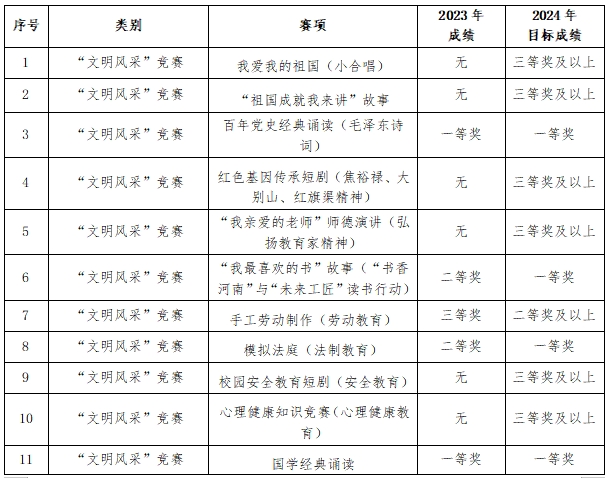 (四)承接技能大赛备赛任务的教学系应结合自身专业优势,组建优质指导教师团队,着力孵化培育至少1项国赛赛项;各系部(校区)应认真督促各指导教师(组)按照需严格执行《3118云顶集团官网学生竞赛管理实施细则》文件要求,做好各项赛事准备工作,保质保量完成选手的日常培训和辅导,力争在本年度的省赛中完成以下成绩目标的突破: