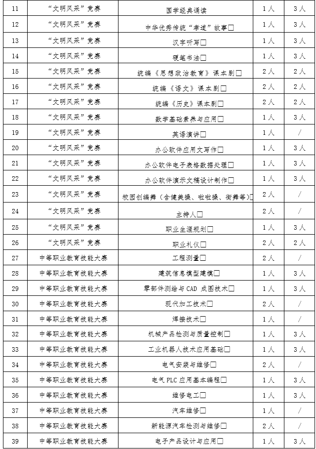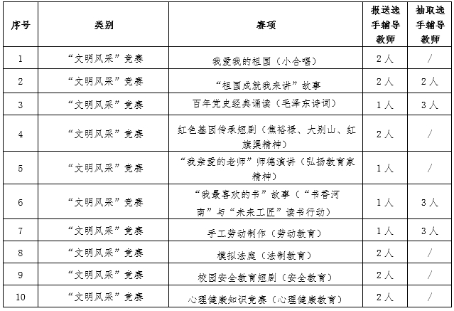 各项竞赛应根据参与校内选拔赛的实际人(队)数确定获奖人(队)数。
