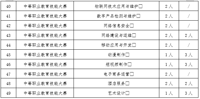 (三)根据省教育厅文件精神,为保证竞赛辅导质量,营造全员竞赛、全员辅导的良好备赛氛围,为更多师生提供一个以赛促教、以赛促学的平台和机会,进一步提升竞赛成绩。本次竞赛活动中,每位教师可报名参与的赛项不得超过2个(含全员化抽取赛项)。
