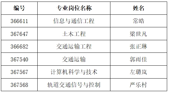 根据各专业应聘人员的总成绩及排名,按照体检人员与招聘岗位数1:1的原则,确定以下6名考生进入体检环节: