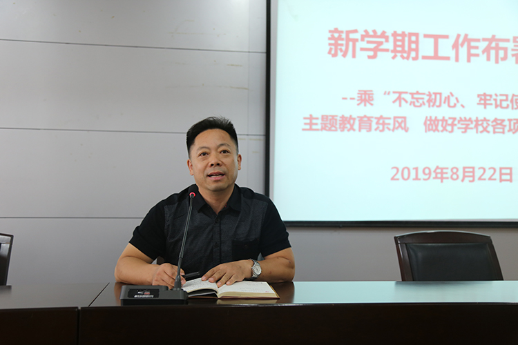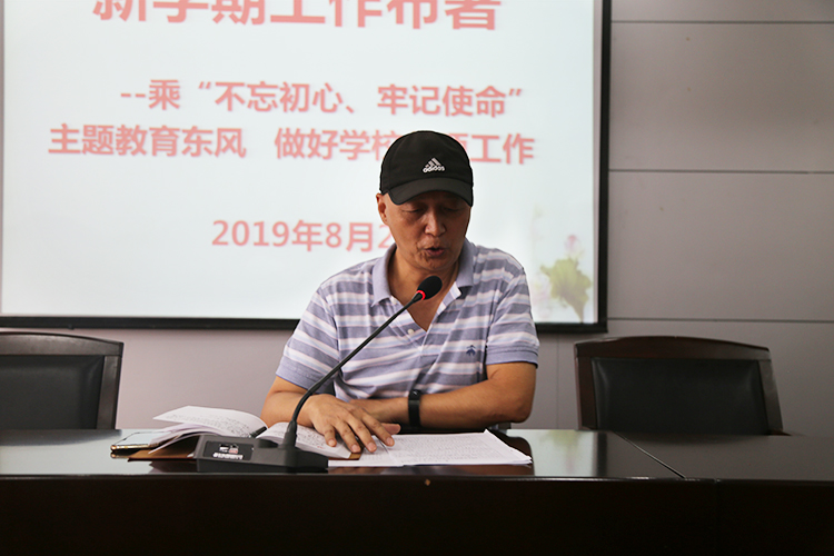 会上,校党委副书记、校长韩耀煌向大家通报了我校“不忘初心、牢记使命”主题教育工作开展情况,并结合主题教育重要意义和目标要求,对新学期重点工作进行安排部署。