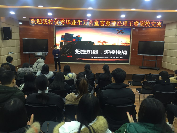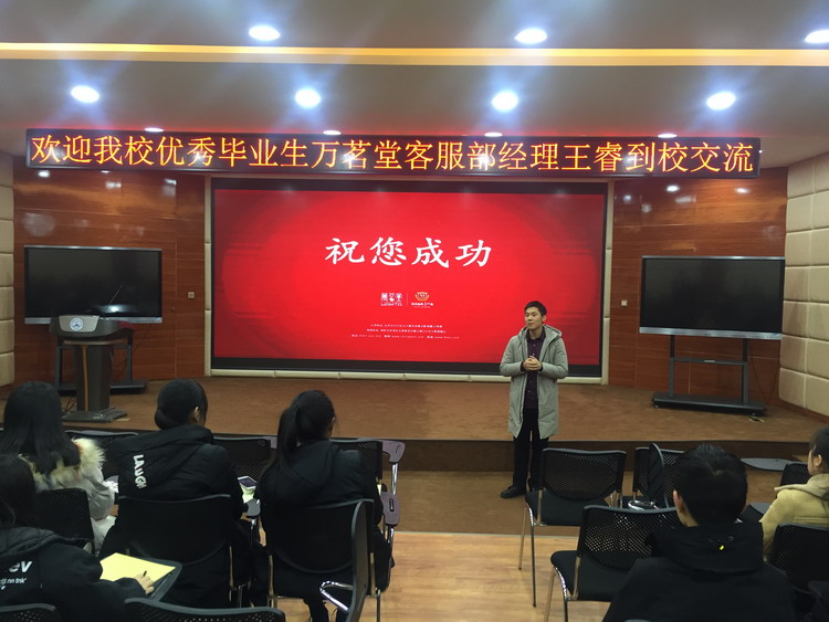 最后,张科长谈到,王睿是我校2006届优秀毕业生,目前任万茗堂公司客服部经理,有着9年的电商销售经验。她开阔地视野、清晰地思维以及敢想敢干地魄力不仅令大家敬佩,其艰苦奋斗的创业精神更值得在校学生认真学习。