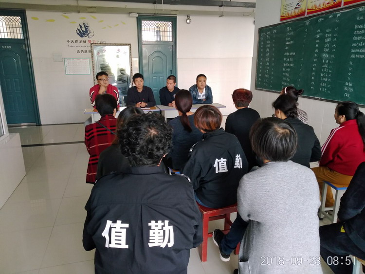 9月28日上午,学生科在五号宿舍楼召开新学期公寓中心宿管人员培训会,学生科科长张波、学生科副科长李臻、保卫科科长姚辰以及公寓管理中心全部工作人员参加会议。