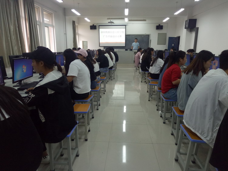 5月7日下午,“广告平面设计”技能大赛在一号实训楼网络机房开赛,17级电子商务专业、客服等专业的5个班级共45人参赛。