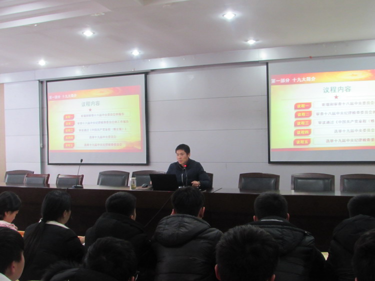 党的十九大召开以来,我校团委积极结合学生实际,精心谋划和组织系列活动,在我校团员青年中迅速掀起了学习宣传贯彻党的十九大精神的热潮。1月4日,校团委组织260余名团学干部集中学习党的十九大精神。校团委书记张波作了题为“不忘初心跟党走 青春践行十九大”的辅导报告。