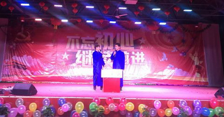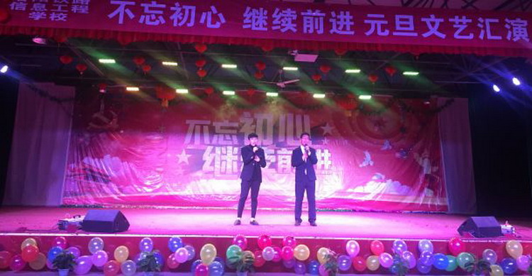 新年的钟声即将敲响,2017年12月26日,3118云顶集团官网2018年“不忘初心、继续前进”迎元旦晚会在三楼活动中心圆满落幕。元旦晚会共演绎三场,分三大专业学生先后观看,莅临此次晚会的领导老师有:我校副校长于庆斌,我校副校长史亚非,我校团委书记、学生科科长张波,团委副书记、学生科副科长马瑞,学生科副科长李臻以及各专业学管主任和班主任老师。 本次汇演紧贴十九大主题,以“不忘初心、继续前进”为主题。文宣部同学带来的一首歌曲《国家》将晚会拉开序幕,歌曲结合手语操,可谓相得益彰。卢恒远、武云庆、马坤的小品《决战洛铁口》结合实际生活,倡导同学们讲文明、重修养,爱护共享单车。赵艺菠、李正前、冯旭辉三位同学为我们带来歌曲《天后》与轮滑社的花式轮滑相结合,亮点频频。师生同台的朗诵《盛世中国》大气恢弘,用诗歌朗诵歌颂祖国。1745班女神舞团为我们带来的舞蹈《Good Time》,青春动感,活力四射。 晚会中,贾宇航、韩鑫、巨宏瑜、韩瑞喜的《喜说洛铁》也将民间曲艺三句半表演形式搬上舞台,通过幽默风趣的语言,赞美学校的成就;张佳宝、陈明、位浩奇为我们带来歌曲《带你去旅行》,为现场营造一种浪漫的青春的氛围;舞蹈社男生带来的《凡新》街舞表演,又一次将晚会推上高潮;舜华社崔智康同学,彭新泉同学的相声《哥俩好》,让现场笑声连连,掌声不断;宋玉坤和团委陈老师演绎《新的天地》,通过歌声赞美祖国大好河山,畅想祖国未来新天地;1744班申潇潇等同学把京剧元素融入到现代舞中,为大家带来一场中西融合的《中国新衣》舞蹈表演;1720班集体诵读《我骄傲,我是中国人》,让现场的每一位同学激情澎湃,热血沸腾; 整台晚会在《不忘初心》这首歌曲中圆满结束。 新年是新的乐章,2018年,让我们继续追求创造,探索实践,不忘初心,继续前进。