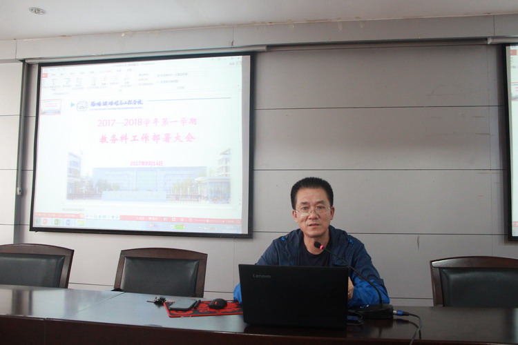 9月14日下午,教务科在一号实训楼二楼多功能报告厅召开2017—2018学年第一学期工作部署大会,教务科负责人及全体教师参加。