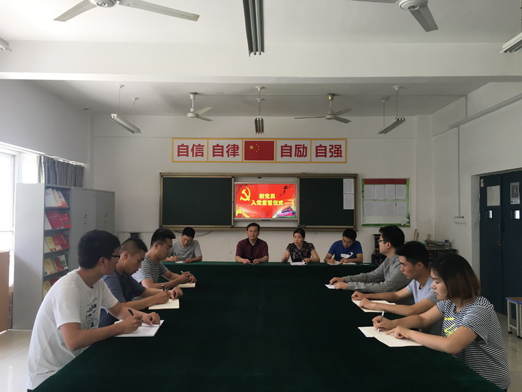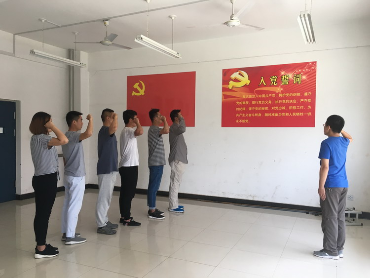 6月7日上午,校党委批准张震等6名同志为中共预备党员后,学生党支部在业余党校召开了入党宣誓大会。11时许,伴随着铿锵有力的《国际歌》,组织委员张玉锋同志带领6名预备党员,面对鲜艳的党旗进行了庄严宣誓。预备党员代表李臻做了发言,他表示以后会更加努力的学习和工作,积极主动地担负起党赋予的责任,为学校争光,为党旗添彩。