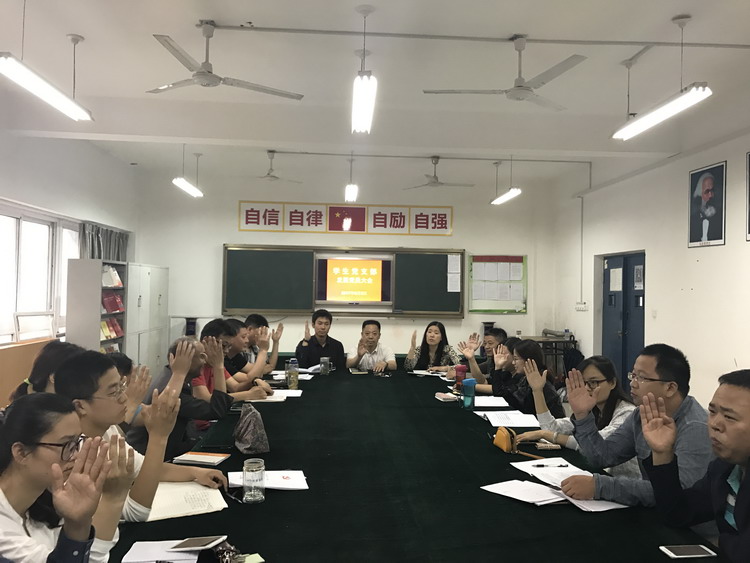 6月5日下午,学生党支部召开了发展党员大会。支部全体党员及张震等6名发展对象参加了本次大会。大会由党办主任郭建丽同志主持。会上,郭主任向全体党员介绍了支部对6名发展对象的培养情况;6名同志依次向大家汇报了自己对党的认识、入党动机及需要向党组织说明的问题;马瑞同志等入党介绍人分别介绍了对发展对象的培养考察情况。经投票表决,21名正式党员一致同意接收张震等6名同志为中国共产党预备党员。