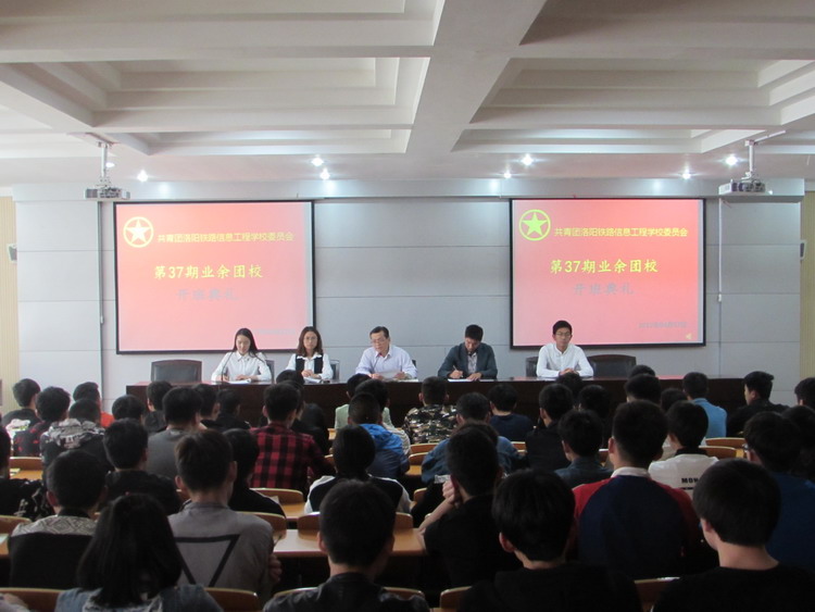 2017年4月17日下午,在激昂的《光荣啊,中国共青团》的团歌声中第37期业余团校开班典礼在二楼报告厅隆重举行。校党委书记陈云峰,校团委书记、学生科科长张波,校团委副书记、学生科副科长马瑞,团委老师陈志坚以及全体学员出席大会。会议由团委朱亚利老师主持。