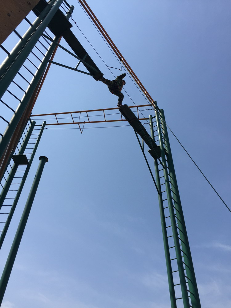 本次活动分为四大板块,由专业拓展师进行培训。48名队员们进行热身之后分组进行训练。“高空断桥”旨在培养学生在高压环境中挑战自我、突破自我的能力,队员们穿戴好护具之后开始向高达20米的断桥挑战,每上一步梯子,都是用魄力战胜恐惧,用坚持打败疲惫。队员们紧咬的牙关,互相鼓励,不时响起澎湃的掌声和欢呼;其中“驿站传书”游戏强调团队沟通的重要性,培养学员突破思维定势充分利用规则。“穿越电网”和“真人CS”游戏让每个队员意识到整体协作与配合的关键,让学员懂得好胜与莽撞都将遭遇淘汰,只有依靠团队的力量才能顺利完成任务。