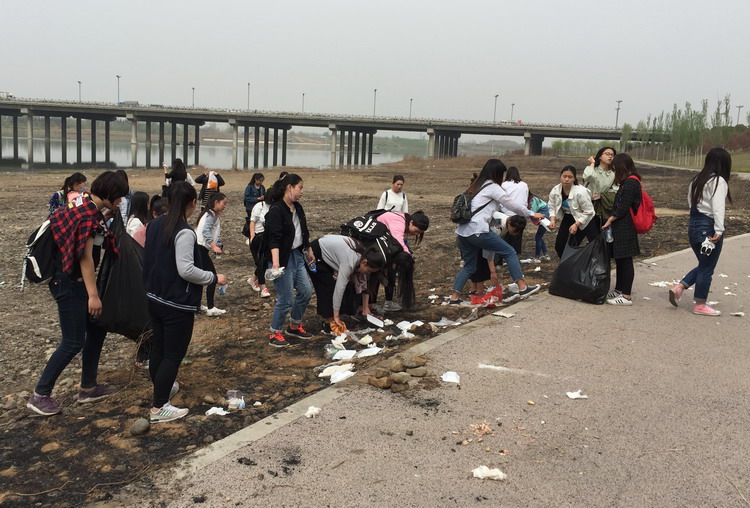 上午十点半,两个团支部准时出发。一路上同学们随手抓拍自然风景,以求发现美;随手捡起地上垃圾,以求保护美。到达目的地后,同学们稍作休息,在老师带领下分成四组,在伊河沿岸捡拾游客留下的垃圾。过程中,同学们发扬不怕脏不怕累的精神,劲头十足,让伊河沿岸重新“容光焕发”。