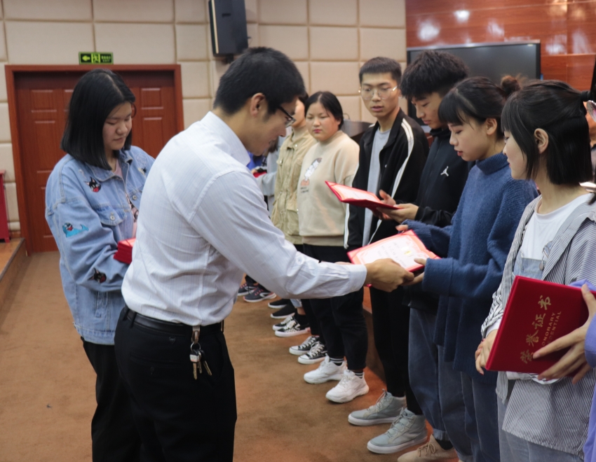 (电信工程系主任张波为我校京东校园实训中心优秀队员颁发荣誉证书)