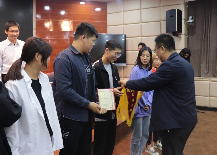 (副校长于庆斌为我校京东校园实训中心优秀团队颁发锦旗)