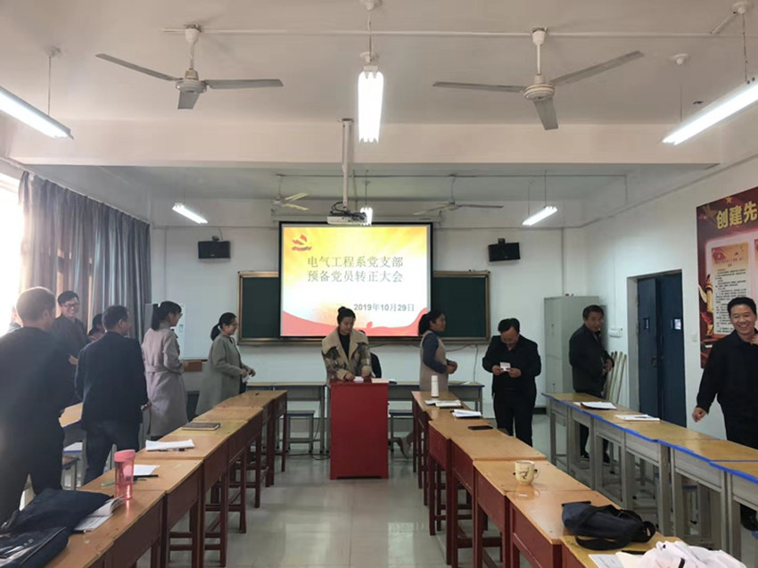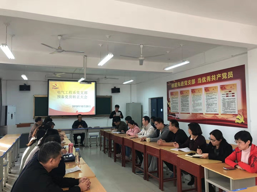10月29日下午,电气工程系党支部在党员活动室召开支部大会。利用预备党员转正会议契机,对支部全体党员开展发展党员工作程序教育。大会由支部书记段云冬主持。