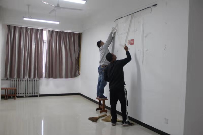 劳动过程中,大家热情高涨,齐心协力,不怕脏,不喊累。经过四十多分钟的劳动,大家将三楼房间基本清扫完毕,义务劳动顺利结束。