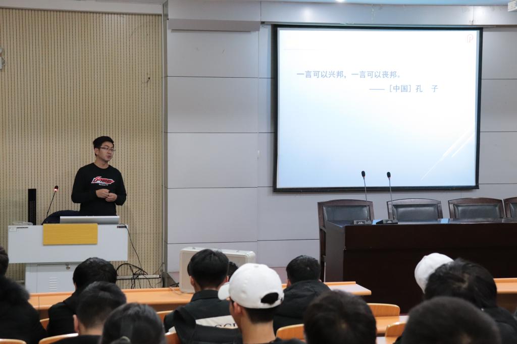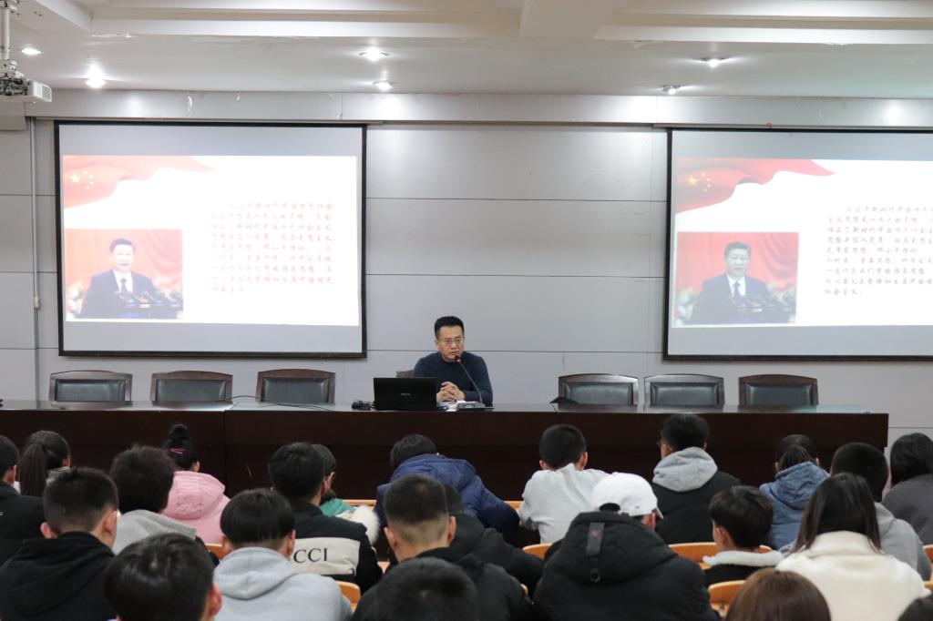 12月4日,张玉锋以共产党人的初心和使命为主线,以大见小,向大家分析了学生的初心和使命。