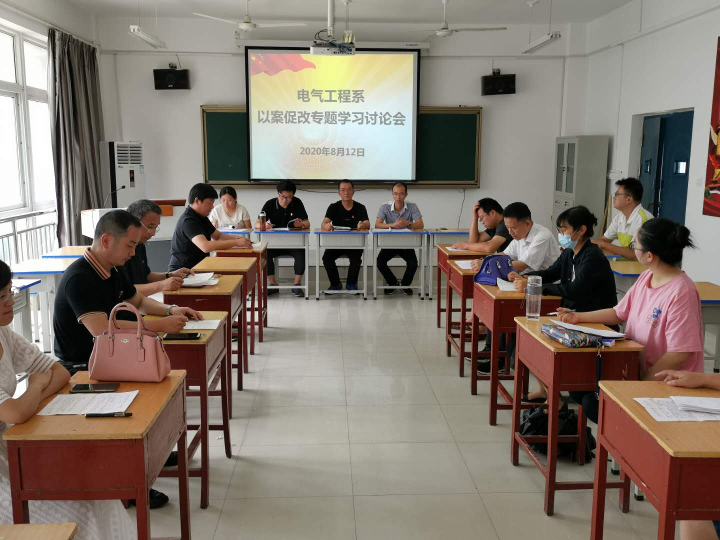 8月12日上午,电气工程系在338党员活动室召开以案促改专题学习讨论会。我系全体教师参加会议,会议由电气工程系党支部副书记杜盟盟同志主持。