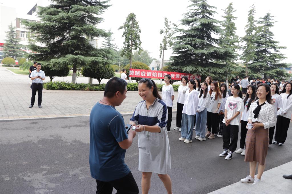 每经过一位老师,学生代表都会齐声的喊到:老师好,祝您节日快乐!老师们或幸福的微笑或致谢的话语在这一刻都成为了“酿得百花成蜜后,为谁辛苦为谁甜”最好的注解。