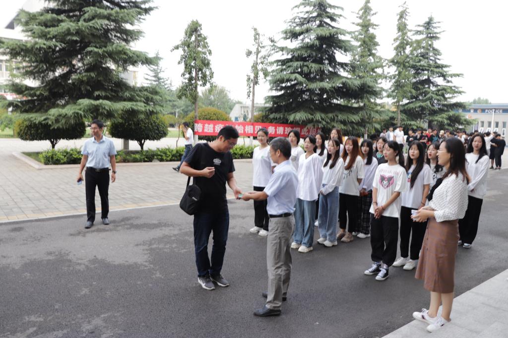 一年年春华秋实,一载载桃李芬芳。正值第三十六个教师节,9月10日早8点,电信工程系主任张波,副主任李军华、李琼和系办公室全体干事与15名学生代表在教学楼门口恭候每一位教师,并为其真诚地送上了一份节日祝福。