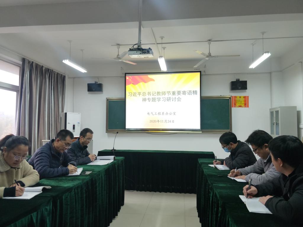 为深入学习贯彻习近平总书记系列重要讲话精神,11月24日下午,电气工程系党支部组织全系职工以教研室为单位开展了学习习近平总书记教师节重要寄语精神研讨会。