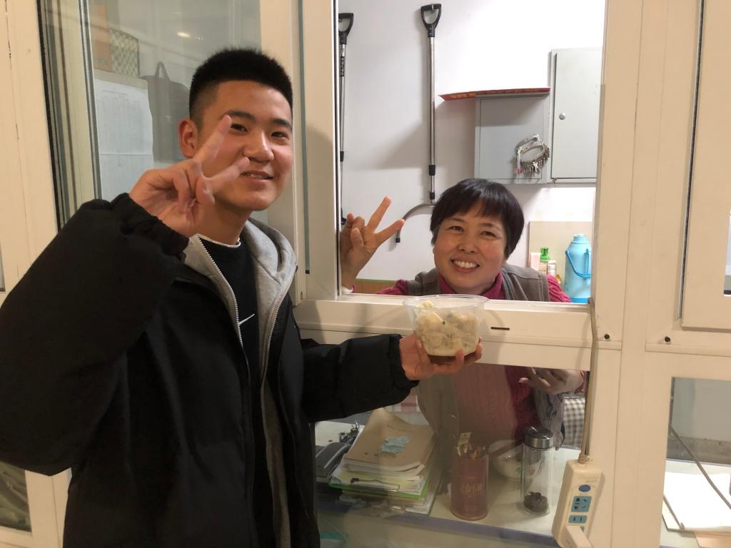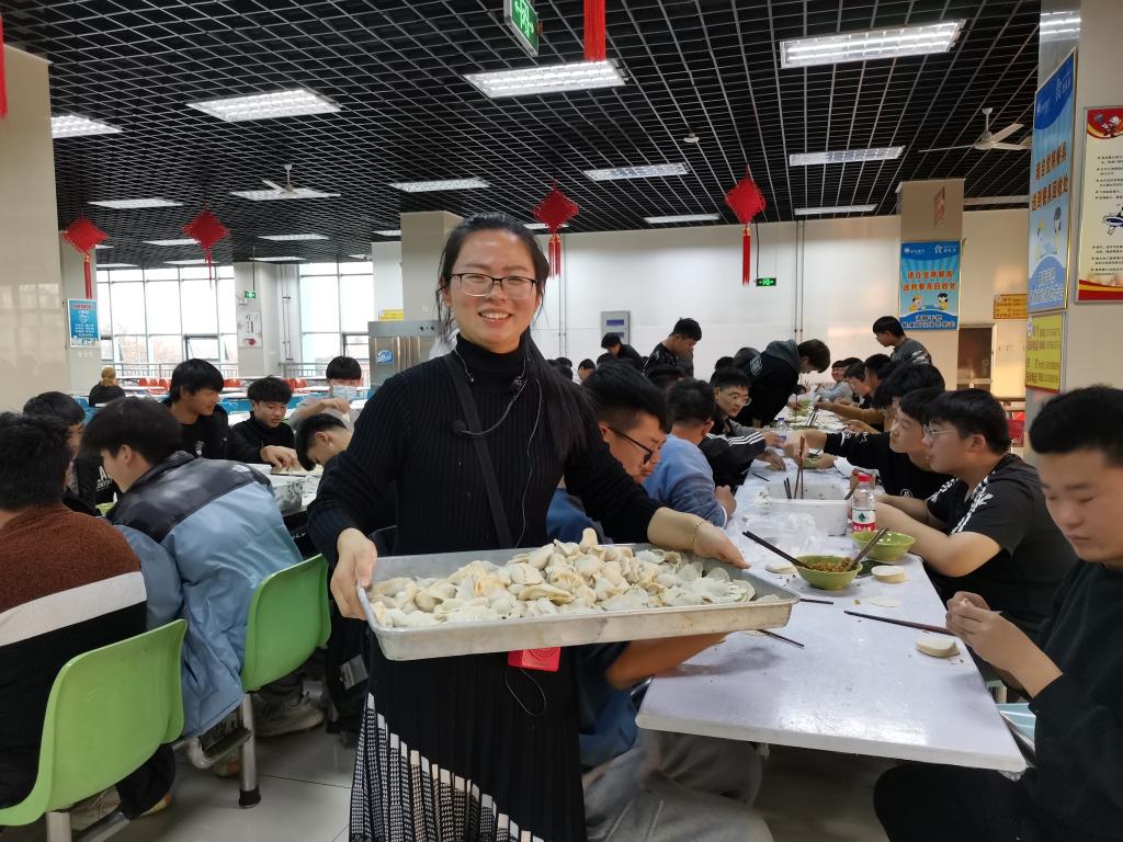 12月21日,组织部分同学在学子餐厅二楼开展包饺子活动。同学们激情高涨,大显身手,包出了各式各样的饺子。同时,为了感谢学校值班老师、宿管阿姨和保安师傅等工作人员平日里的辛勤付出,同学们还给他们送去了热乎乎的饺子,表达了节日的问候。