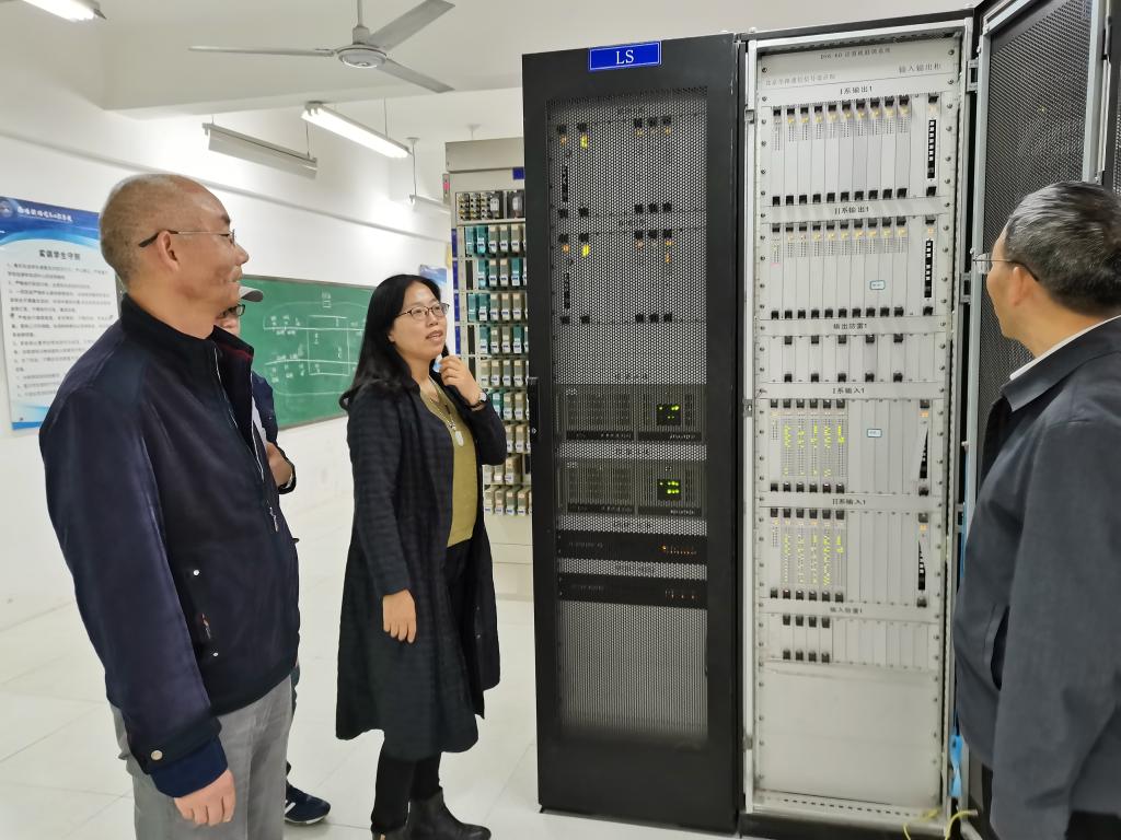 在轨道信号工程系主任王民哲的带领下,张国侯主任一行参观了我校高速铁路信号维护综合实训室及计算机联锁实验室。在参观过程中,王民哲和铁道信号专业教师宋玉鼎就我校信号专业实验实训室建设情况及使用情况向各位来宾做了详细介绍。