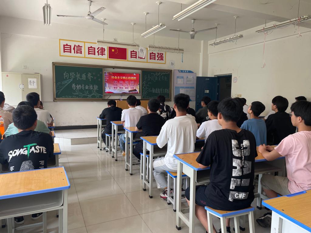 通过观看李虎学长的优秀事迹,同学们坚定了自己对未来的信心,励志一定要向学长看齐,争做一名高质量的毕业生,敢于拼搏,勤奋钻研,学好专业技能知识,成就出彩人生。学管主任马瑞对广大学生提出了要求,她希望同学们积极学习学长的宝贵品质,牢记责任,不忘使命,为实现职业教育的宏伟目标贡献自己的力量。