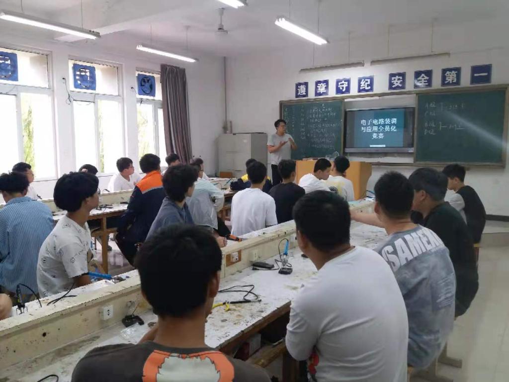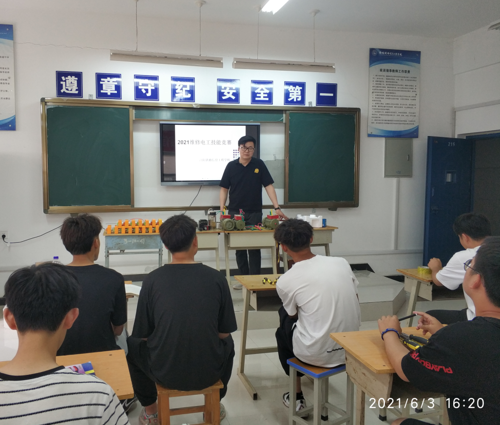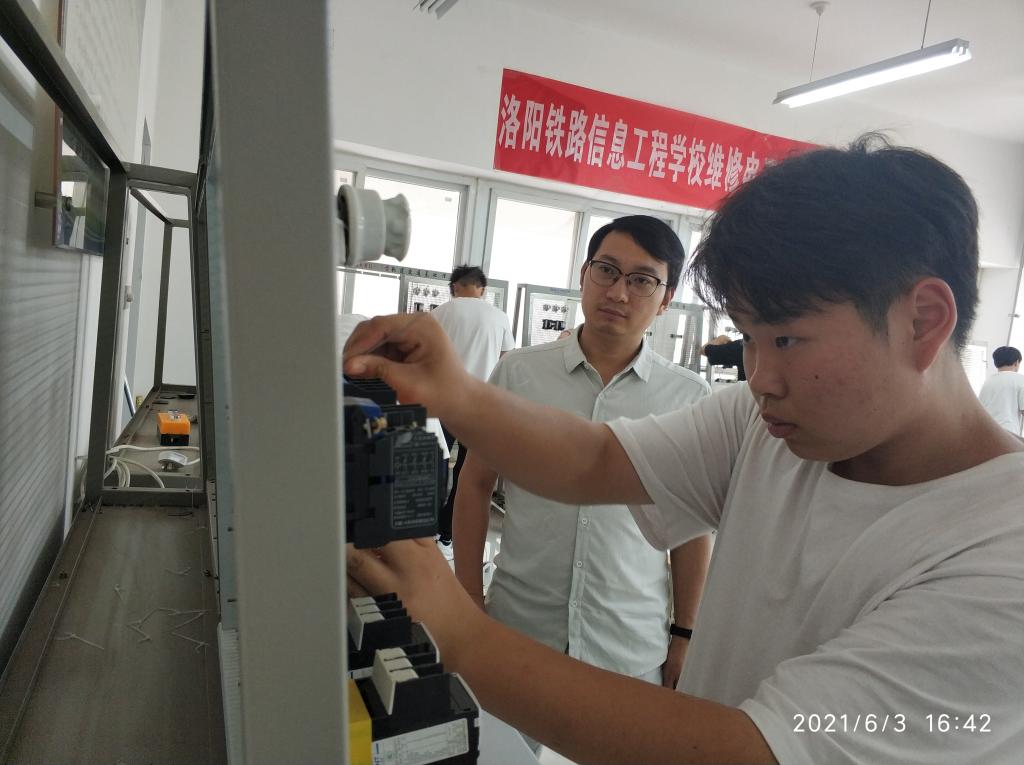 6月3日,电气工程系在一号实训楼分别开展了维修电工全员化竞赛、电子装配与调试全员化竞赛两项赛事的校内学生选拔工作,电气工程系副主任刘俊辉到现场指导并为选手加油鼓劲。