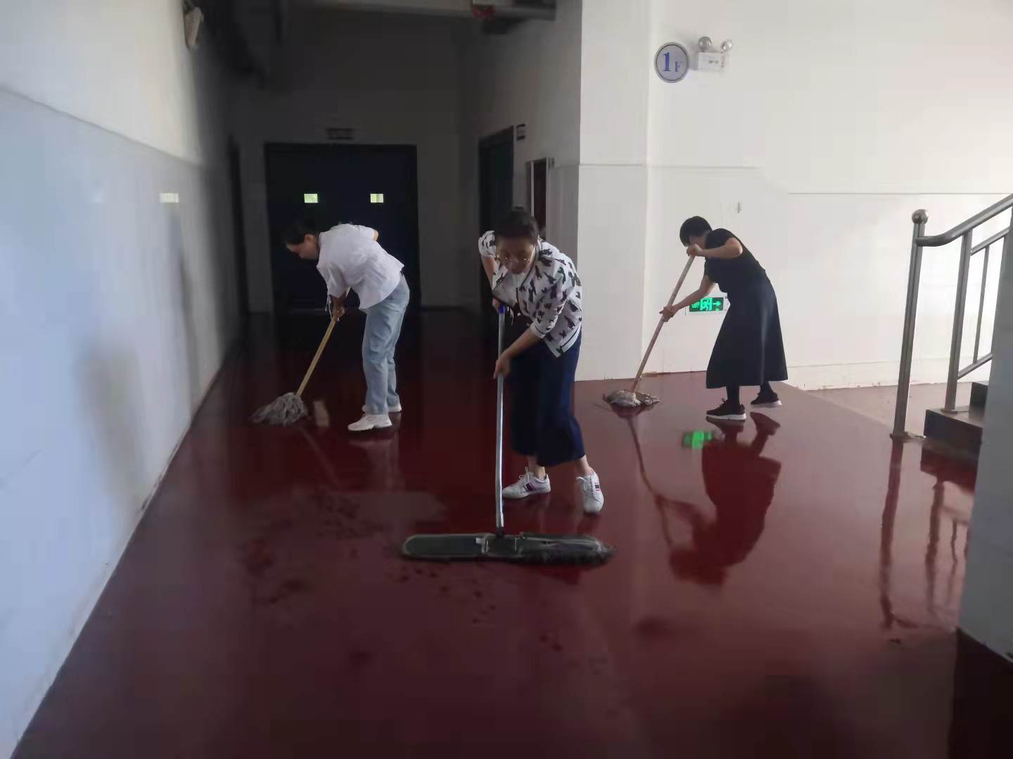 活动中,全体党员不惧辛苦,全力投入劳动中,将二号教学楼大厅、楼道、楼梯和扶手进行了彻底清洁,并对重点防控区域进行了消杀,为迎接开学做好了准备。