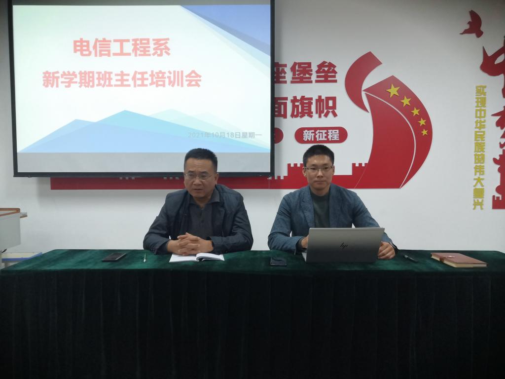 10月18日,电信工程系召开新学期班主任能力培训会议。校党委委员、副校长于庆斌,电信工程系党支部书记、系主任张波及全体班主任参加。本次会议由张波主持。