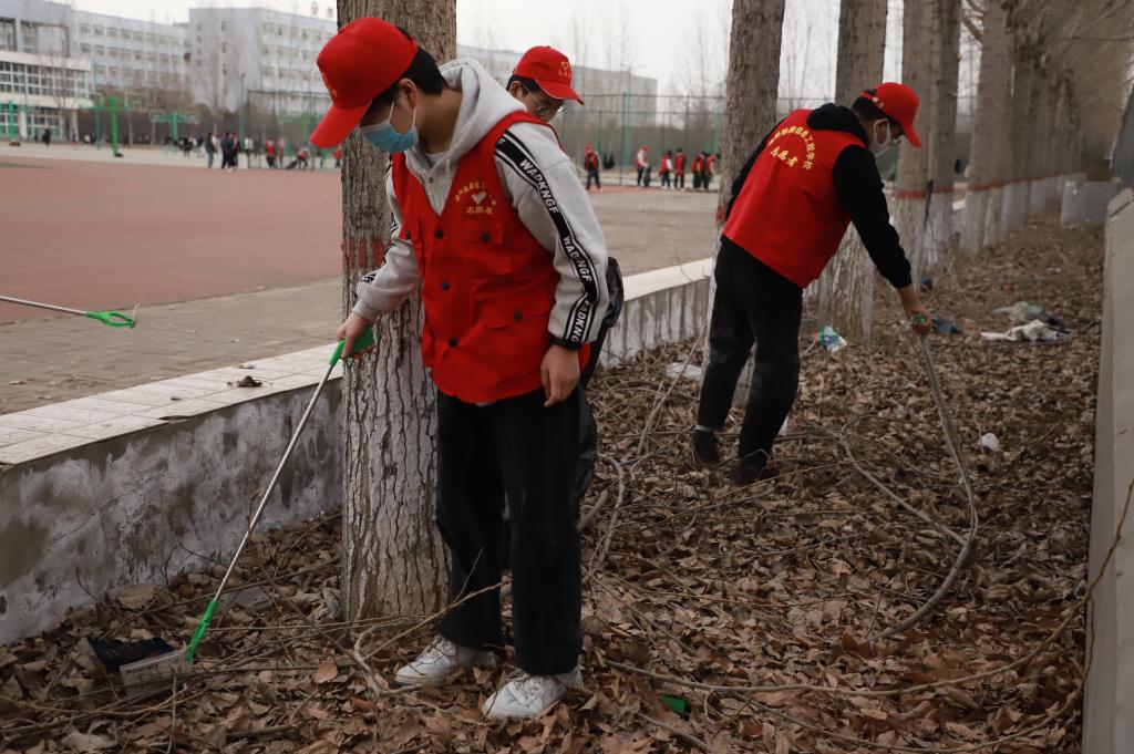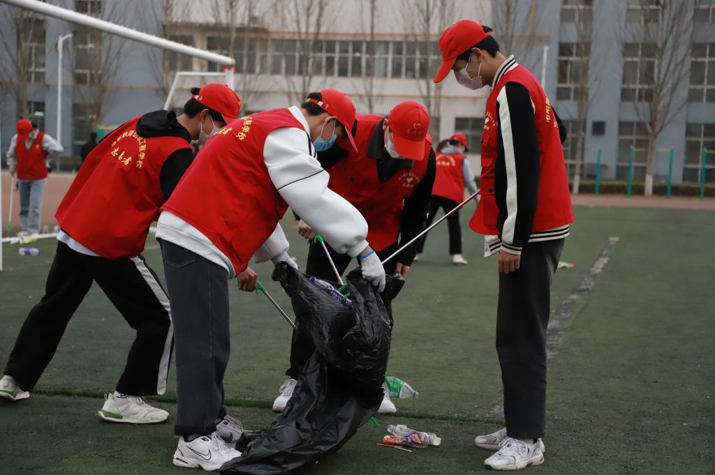 3月5日是第59个学雷锋纪念日,为践行和弘扬雷锋精神,校团委组织团学会开展“弘扬雷锋精神、美化校园环境”志愿服务活动。大家身着志愿者马甲,带着各种清洁工具,干劲十足、欢声笑语,对校园进行地毯式的垃圾清理,使校园环境焕然一新。
