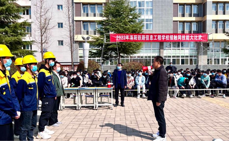 为激发学生学习激情,提高专业技能,做到学生在校学习与施工现场“零距离”对接,3月23日、24日下午在天佑广场、洛铁站南侧,电气工程系开展了“提素质、比技能、树形象”接触网技能比武活动。活动分为个人项目“腕臂组装”和集体项目“b值调整”两场,2020级电气化铁道供电专业10个班级的60余名学生代表参加,全体供电专业学生到场观看学习。