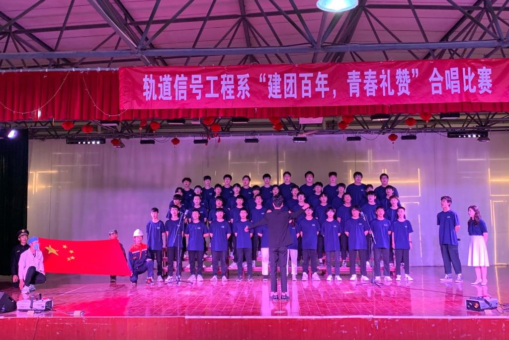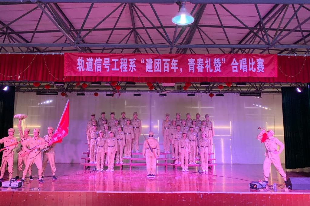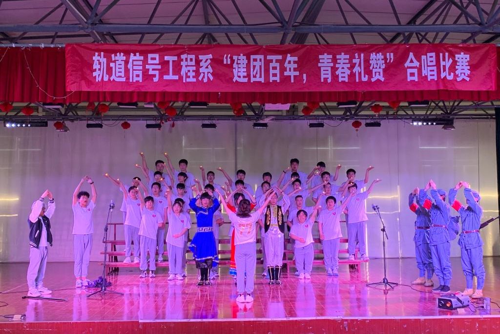 为庆祝中国共青年团建团100周年,展现轨道信号工程系青年学子风采,轨道信号工程系团总支于4月18日在校餐厅三楼学生活动中心举行“建团百年,青春礼赞”合唱比赛。