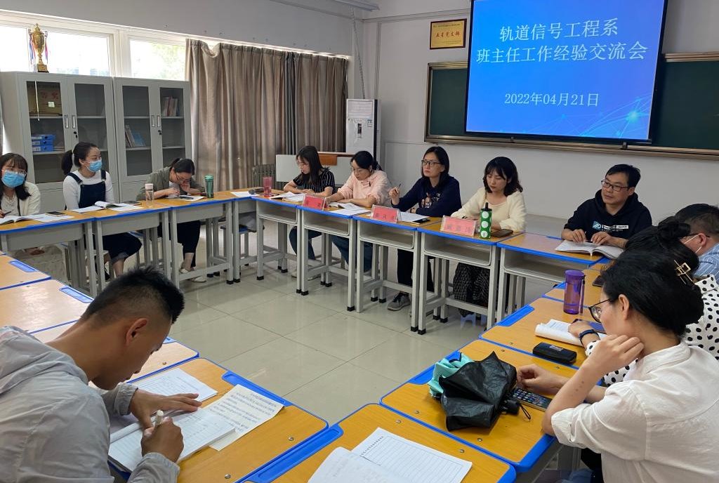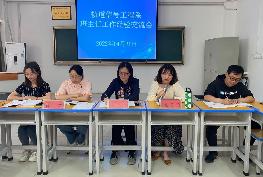 为加强班主任队伍建设和强化班级育人管理,切实提高班主任自身素质和业务水平,4月21日下午,轨道信号工程系在信号党支部238会议室组织开展了班主任工作经验交流会,系主任、党支部书记张建平,思政创新团队负责人秦凤美老师出席会议,我系全体班主任老师和思政创新团队老师参加会议,学管副主任马瑞主持会议。