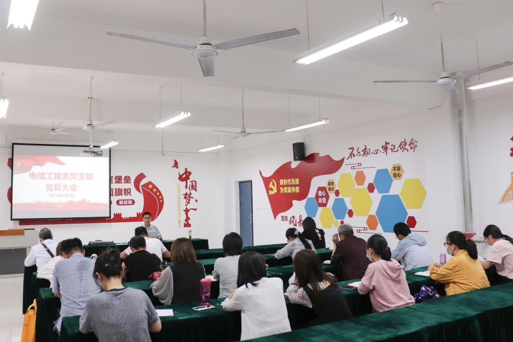 5月5日下午,电信工程系党支部在2号教学楼党员活动室开展集中政治理论学习。电信工程系全体党员参加会议,会议由系党支部书记张波主持。