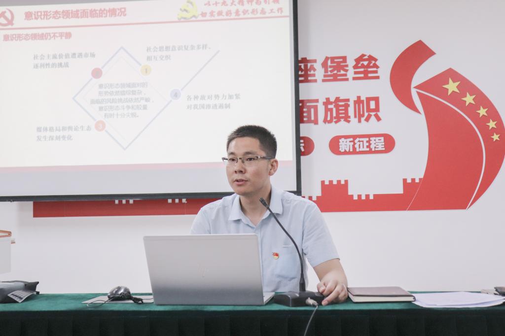 张波向全体党员讲授了题为《重视和加强党的意识形态工作》的专题党课。党课从意识形态工作的地位作用出发,深刻剖析了意识形态领域面临的情况,提出意识形态工作的基本要求,党员结合实际应切实做好学校意识形态工作。