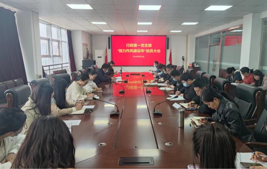 4月14日,行政第一党支部组织所属科室全体教职工在图书信息楼4楼会议室召开“能力作风建设年”动员大会。会议由行政第一党支部书记尹亚波主持。