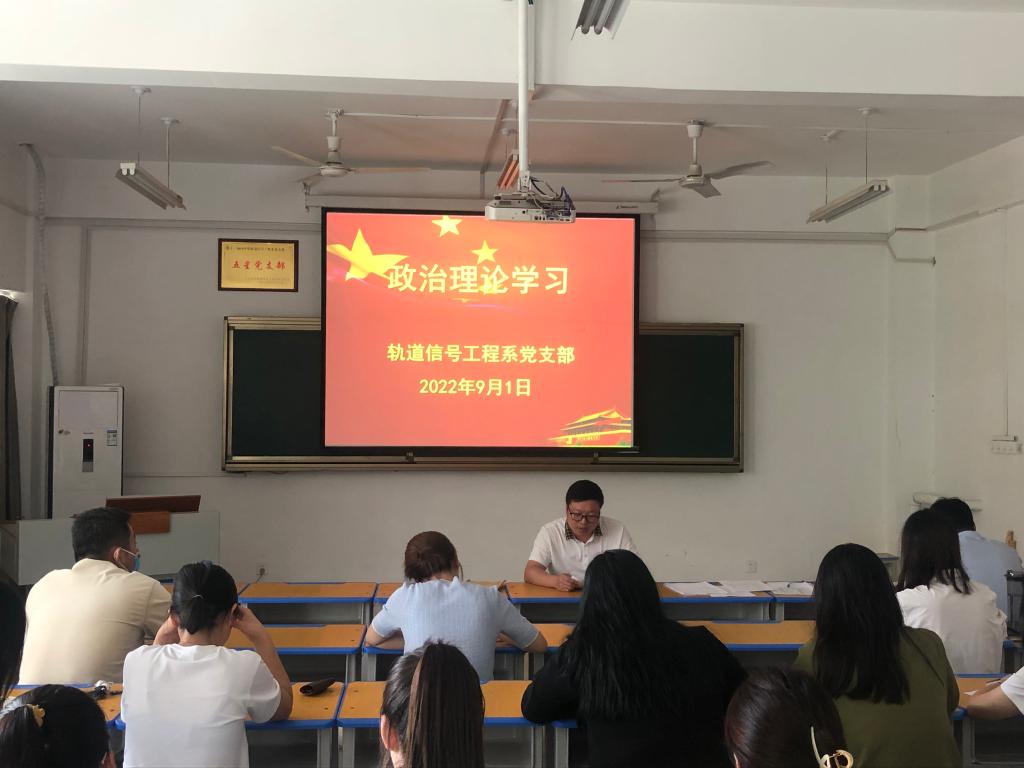 根据学校党委统一安排和部署,9月1日下午,轨道信号工程系党支部在1号教学楼238党员活动室开展政治理论学习暨能力作风建设年研讨交流活动。支部所属科室全体党员及教职工参加,活动由支部书记张建平主持。